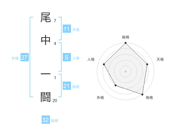 尾中 一闘さんを姓名の画数から五運を鑑定
