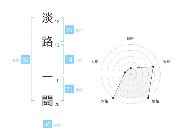淡路 一闘さんの外格は32画の5点!