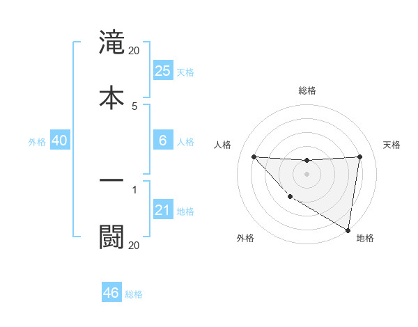 滝本 一闘さんを姓名の画数から五運を鑑定