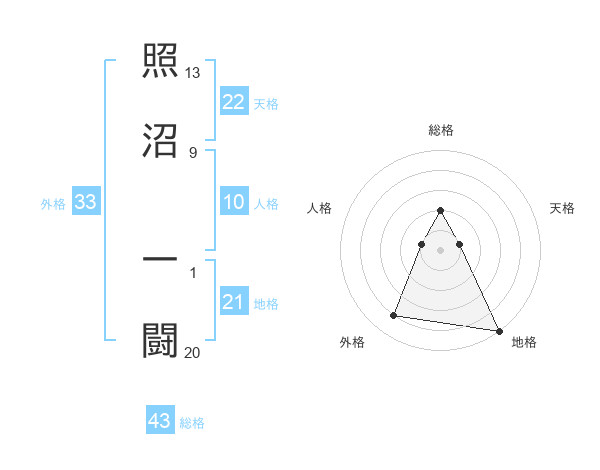 照沼 一闘さんの外格は33画の4点!