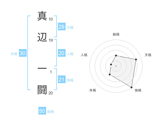 真辺 一闘さんの総格は50画の2点!