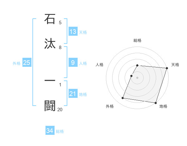 石汰 一闘さんを姓名の画数から五運を鑑定