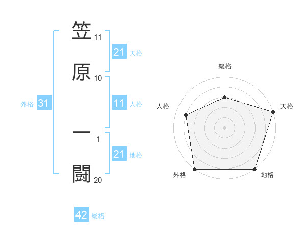 笠原 一闘さんの地格は21画の5点!