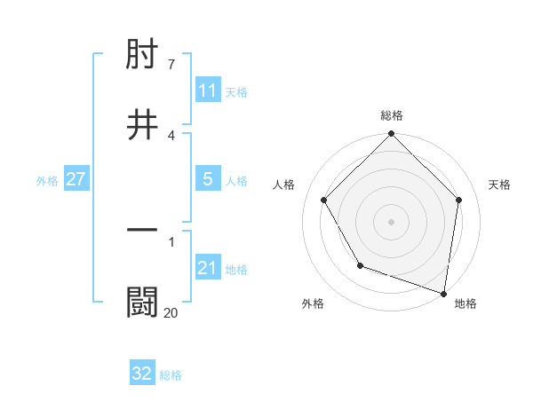 肘井 一闘さんを姓名の画数から五運を鑑定