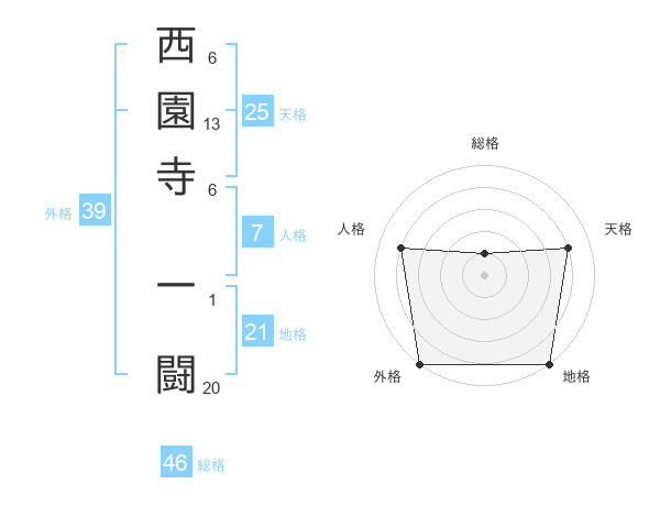 西園寺 一闘さんの外格は39画の5点!