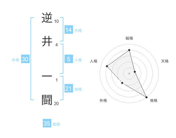 逆井 一闘さんの総格は35画の4点