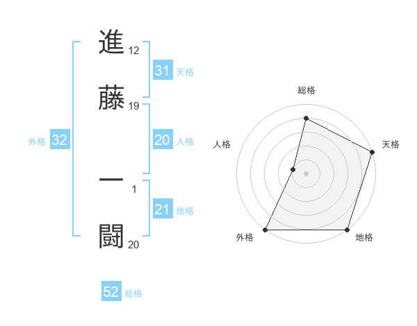 進藤 一闘さんを姓名の画数から五運を鑑定