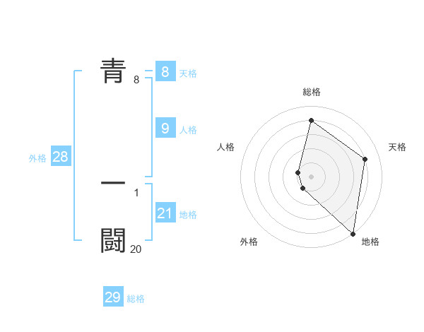 青 一闘さんの総格は29画の4点!