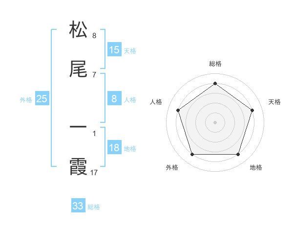 松尾 一霞さんの総格は33画の4点!