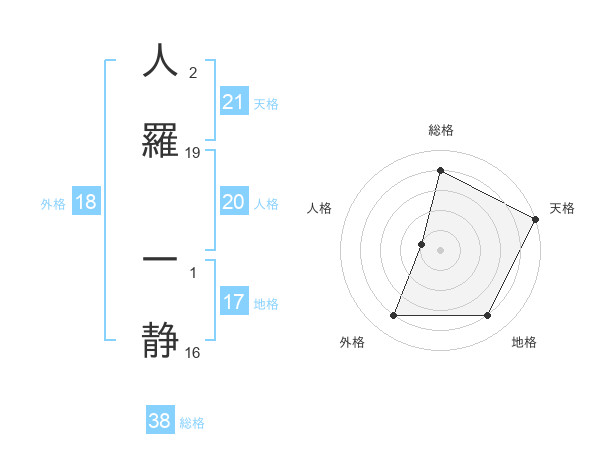 人羅 一静さんの総格は38画の4点!