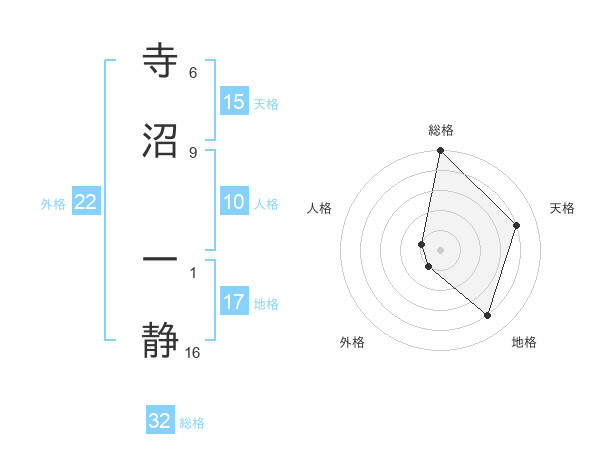 寺沼 一静さんの総格は32画の5点!