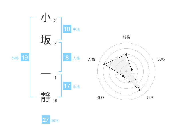 小坂 一静さんの総格は27画の3点!
