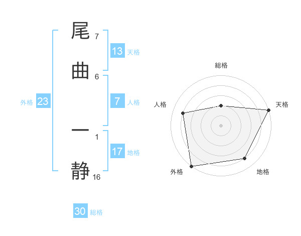尾曲 一静さんを姓名の画数から五運を鑑定