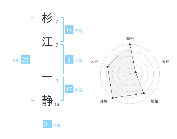 杉江 一静さんの総格は31画の5点!