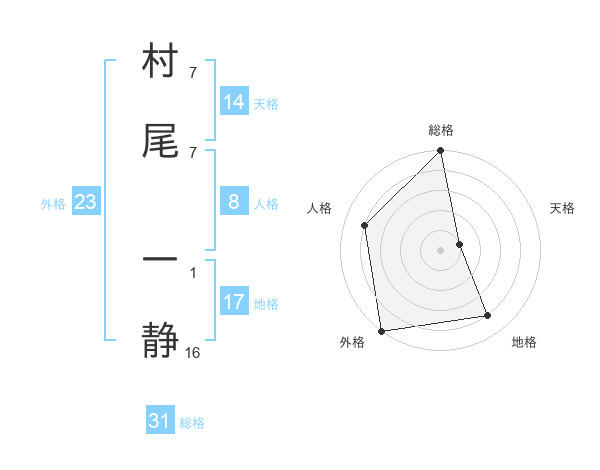 村尾 一静さんの総格は31画の5点!