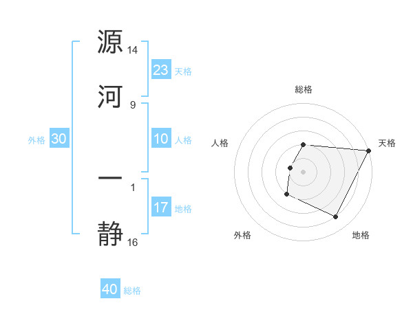 源河 一静さんの天格は23画の5点!