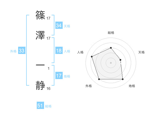 篠澤 一静さんを姓名の画数から五運を鑑定