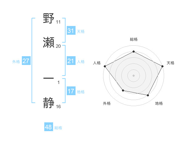 野瀬 一静さんを姓名の画数から五運を鑑定