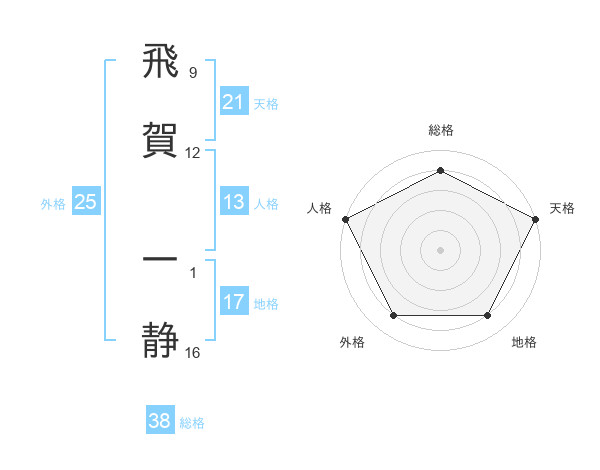 飛賀 一静さんの天格は21画の5点!