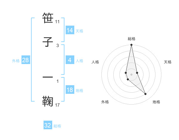笹子 一鞠さんの総格は32画の5点!