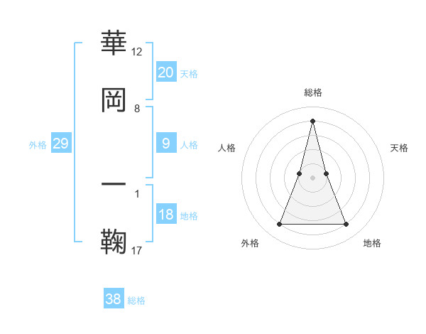 華岡 一鞠さんの総格は38画の4点!