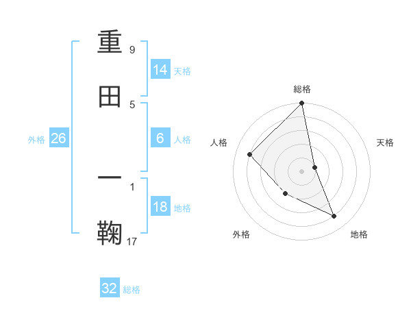 重田 一鞠さんを姓名の画数から五運を鑑定