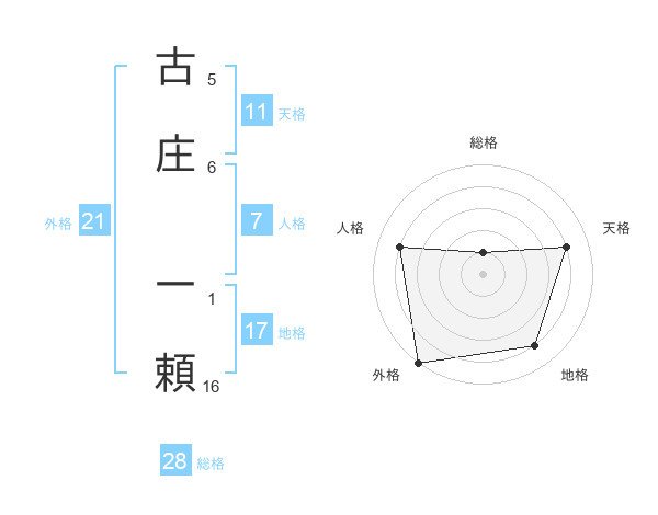 古庄 一頼さんを姓名の画数から五運を鑑定