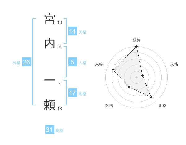 宮内 一頼さんの総格は31画の5点!