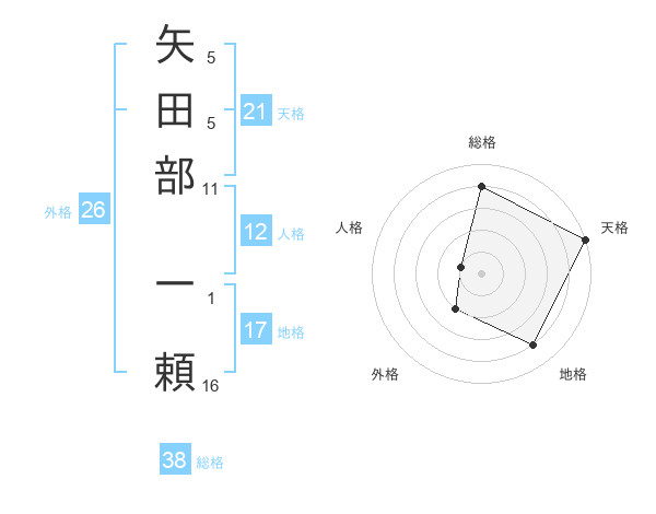 矢田部 一頼さんを姓名の画数から五運を鑑定