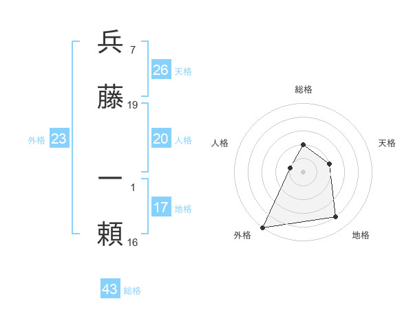 兵藤 一頼さんを姓名の画数から五運を鑑定
