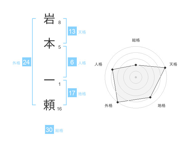 岩本 一頼さんの天格は13画の5点!