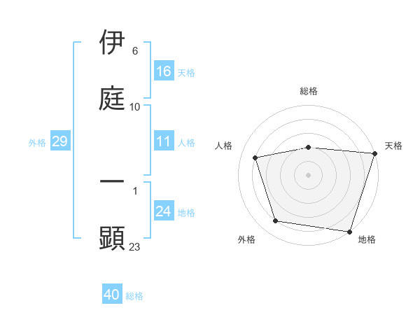 伊庭 一顕さんの天格は16画の5点!