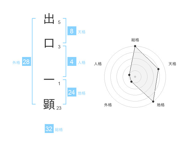 出口 一顕さんの総格は32画の5点!