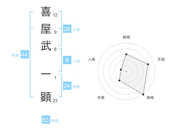 喜屋武 一顕さんの総格は53画の3点!