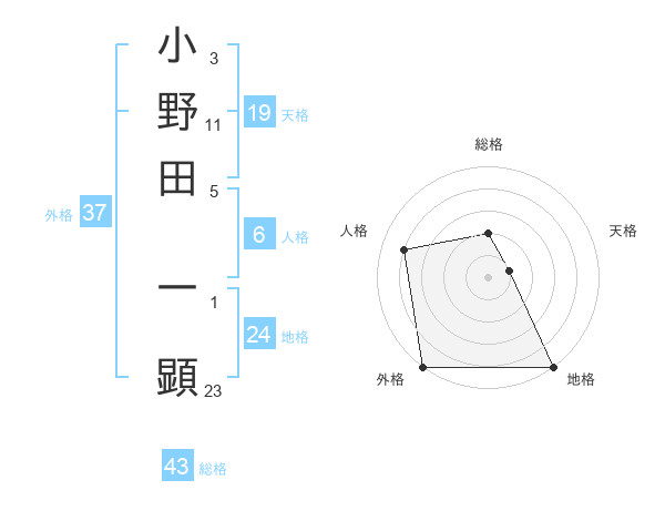 小野田 一顕さんの外格は37画の5点!