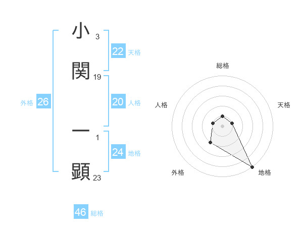 小関 一顕さんの総格は46画の1点!
