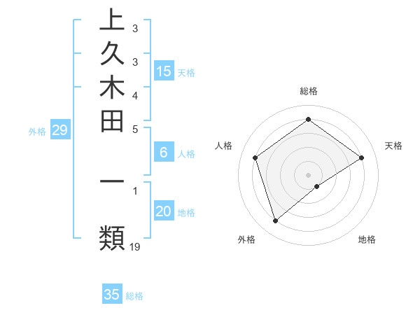 上久木田 一類さんを姓名の画数から五運を鑑定