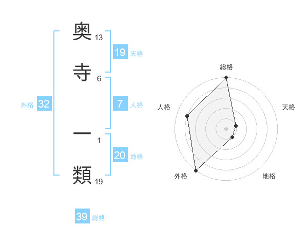 奥寺 一類さんの総格は39画の5点!