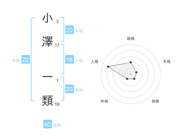 小澤 一類さんの地格は20画の1点!