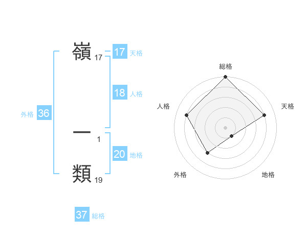 嶺 一類さんの地格は20画の1点!