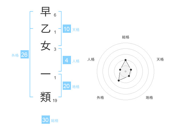 早乙女 一類さんを姓名の画数から五運を鑑定