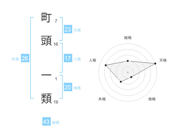 町頭 一類さんの総格は43画の2点!