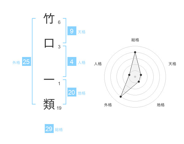竹口 一類さんの総格は29画の4点!
