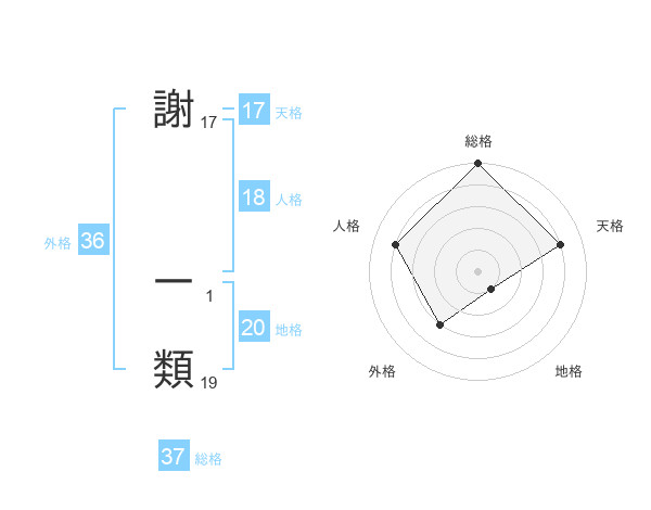 謝 一類さんの総格は37画の5点!