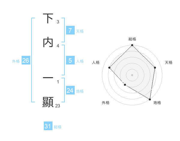 下内 一顯さんの総格は31画の5点!