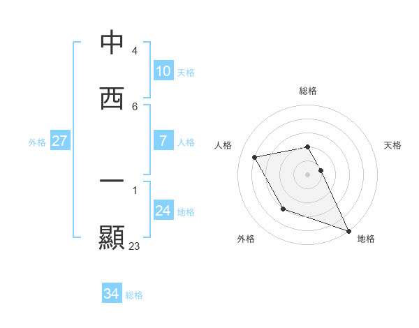 中西 一顯さんの総格は34画の2点!