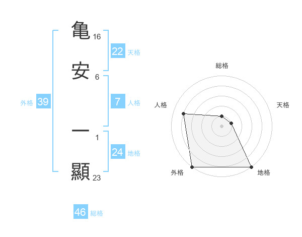 亀安 一顯さんの外格は39画の5点!