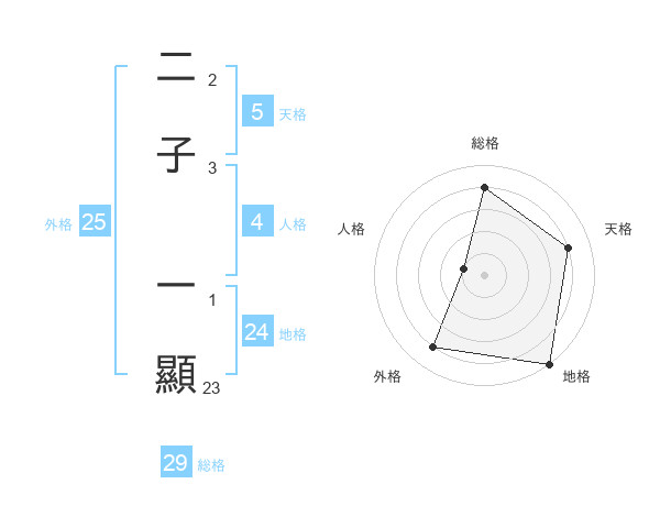 二子 一顯さんの総格は29画の4点!