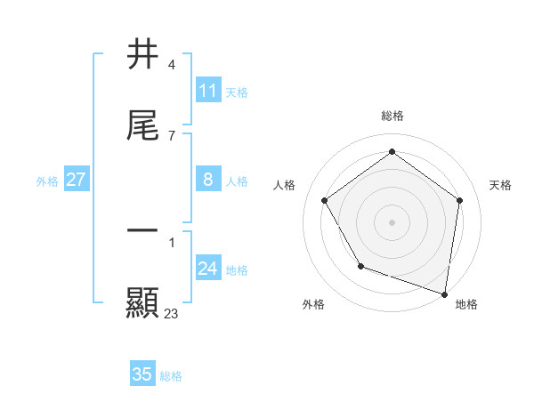 井尾 一顯さんを姓名の画数から五運を鑑定