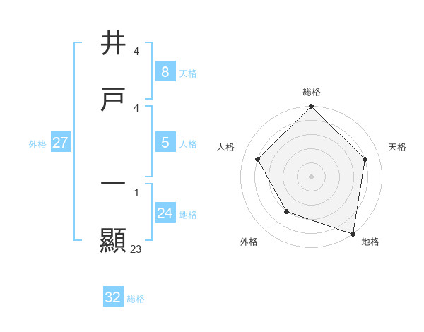 井戸 一顯さんを姓名の画数から五運を鑑定